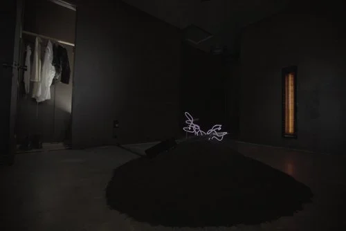 INNER WORLD OF A WOMAN explores themes of feminine power and emergence by means of an immersive sound installation. Viewers were invited to meditate in the cavernous structure with the artist’s light sculpture synced to the undulating sounds of the piece where themes of regeneration, birth and death permeate the space. A recording of conversation and a closet of lit clothing separate inner and outer worlds highlighting the performance of femininity juxtaposed by the potency of feminine power.